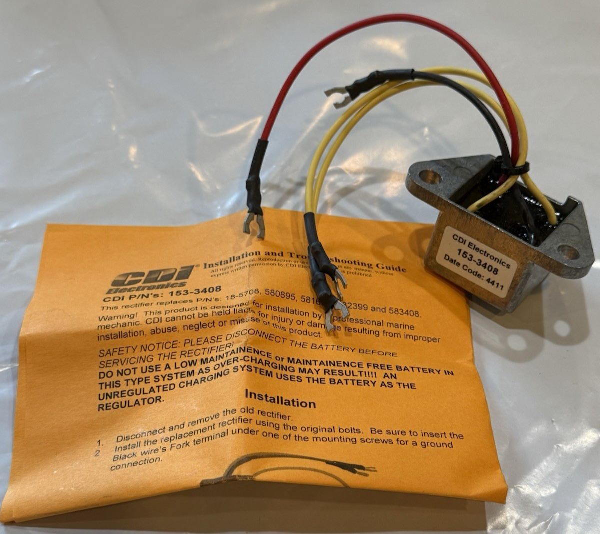 CDI Electronics 153-3408 Johnson/Evinrude Rectifier-2/3/4/6 Cyl(1969-2000) *OEM*