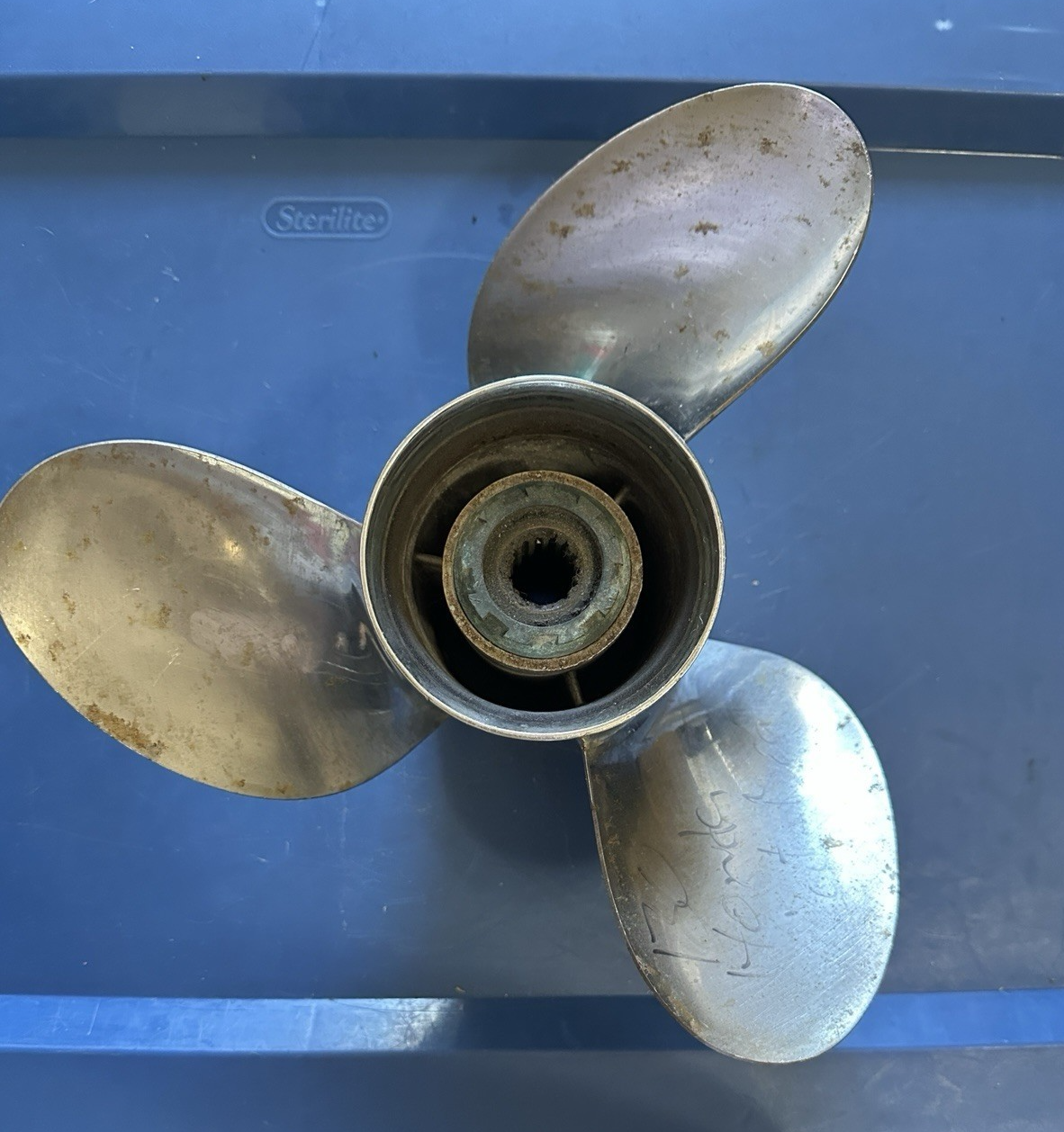 Three blade 13 1/4 inch pitch, and vent ports.This will fit Mercury, Yamaha, Honda and Mercury 3&4 cly motors with 4 inch diameter. This is a counter turning prop.