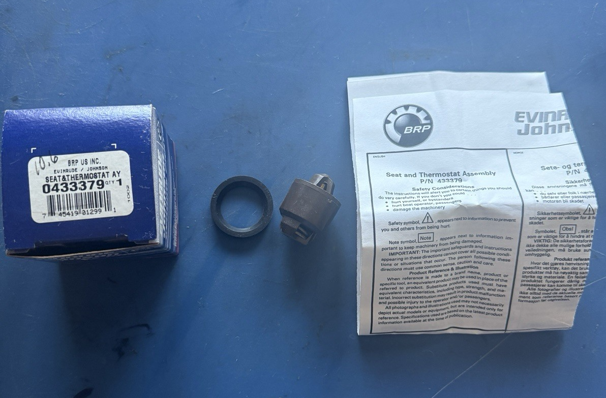 Johnson Evinrude OMC New OEM Thermostat & Seat Assembly 0433379