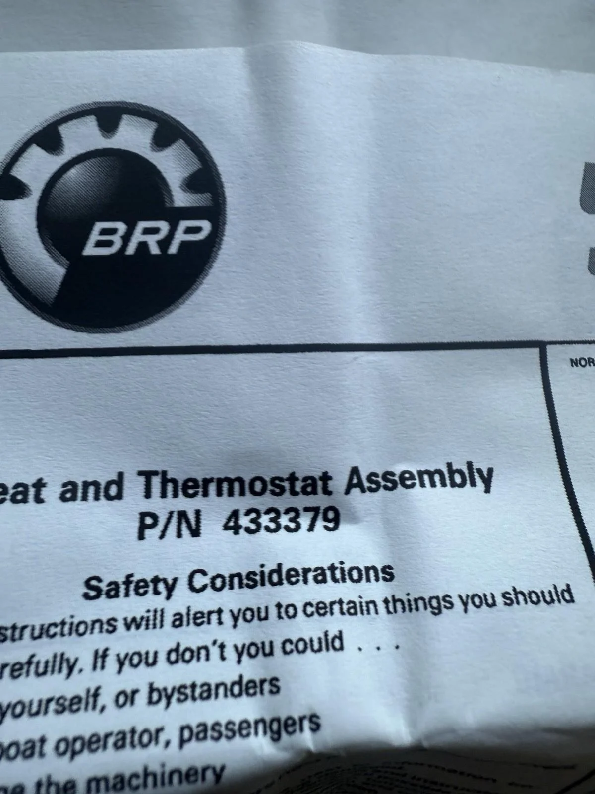 Consult your dealer or parts professional if unsure the item is correct.