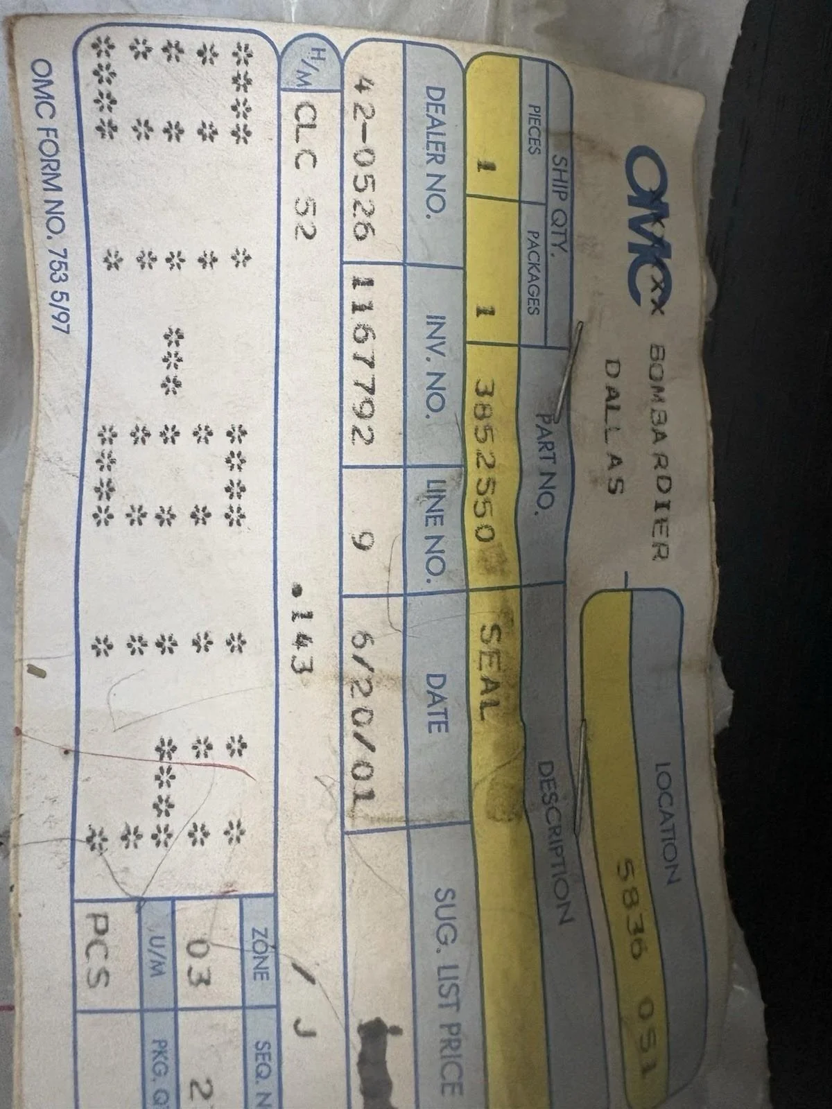 *NEW OEM* EVINRUDE JOHNSON OMC BRP SEAL PN 3852550
