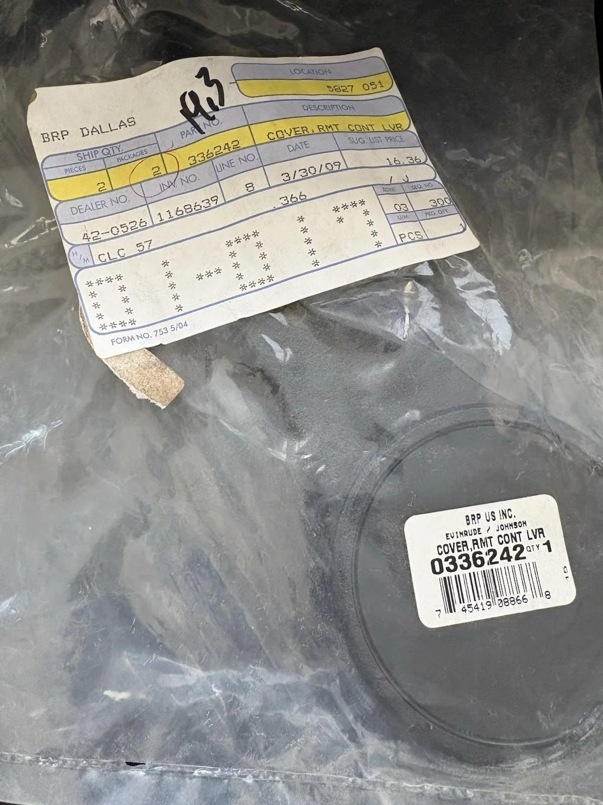 *NEW OEM* OMC 0336242 REMOTE CONTROL HANDLE COVER 336242