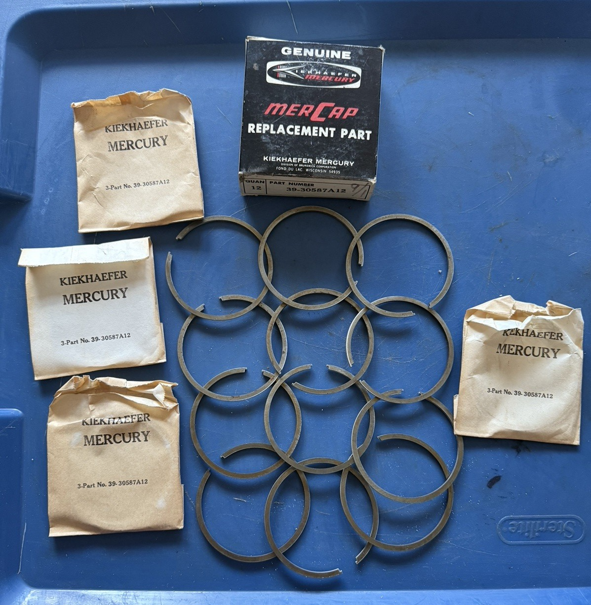 NOS OEM Mercury 39-30587A12 PISTON RINGS (Set Of 12 RINGS) (3/32") THICK