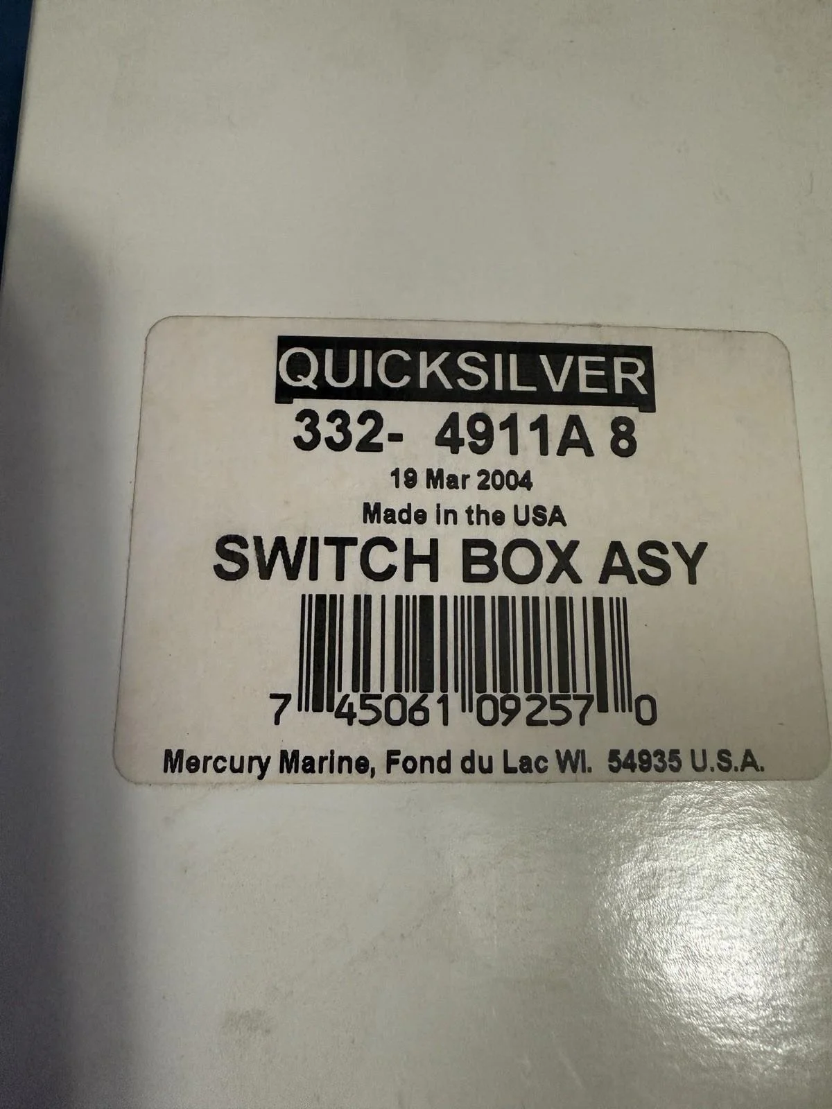 NOS OEM Mercury Quicksilver Mercruiser 332-4911A8 Switch Box Assembly