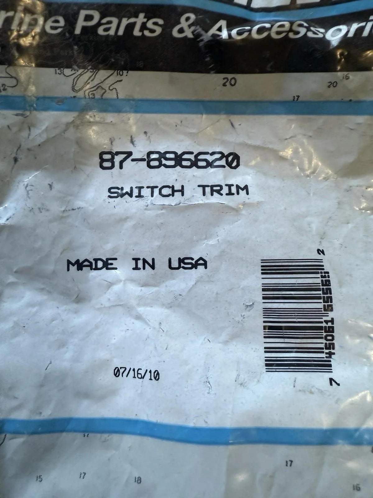 NOS OEM MERCURY QUICKSILVER TRIM SWITCH ASSY 896620, 87-896620