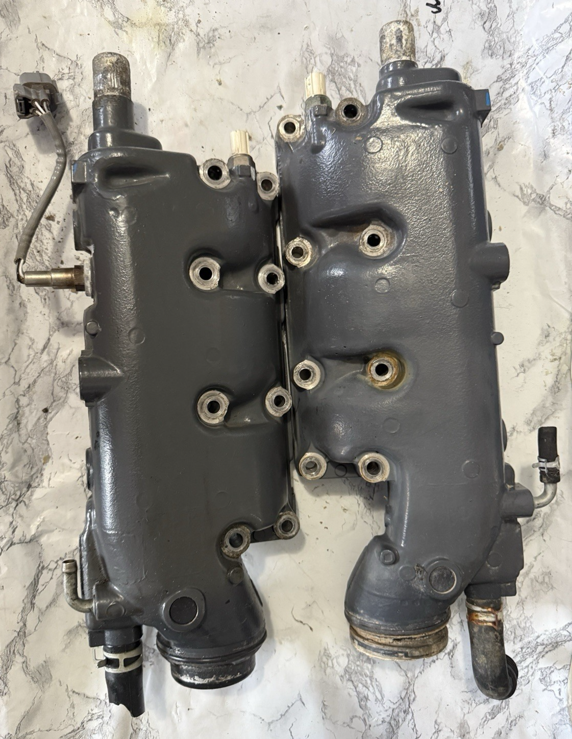 OEM Honda BF200 outboard exhaust manifold set 18110-ZY3-010ZA, 18120-ZY3-010ZA