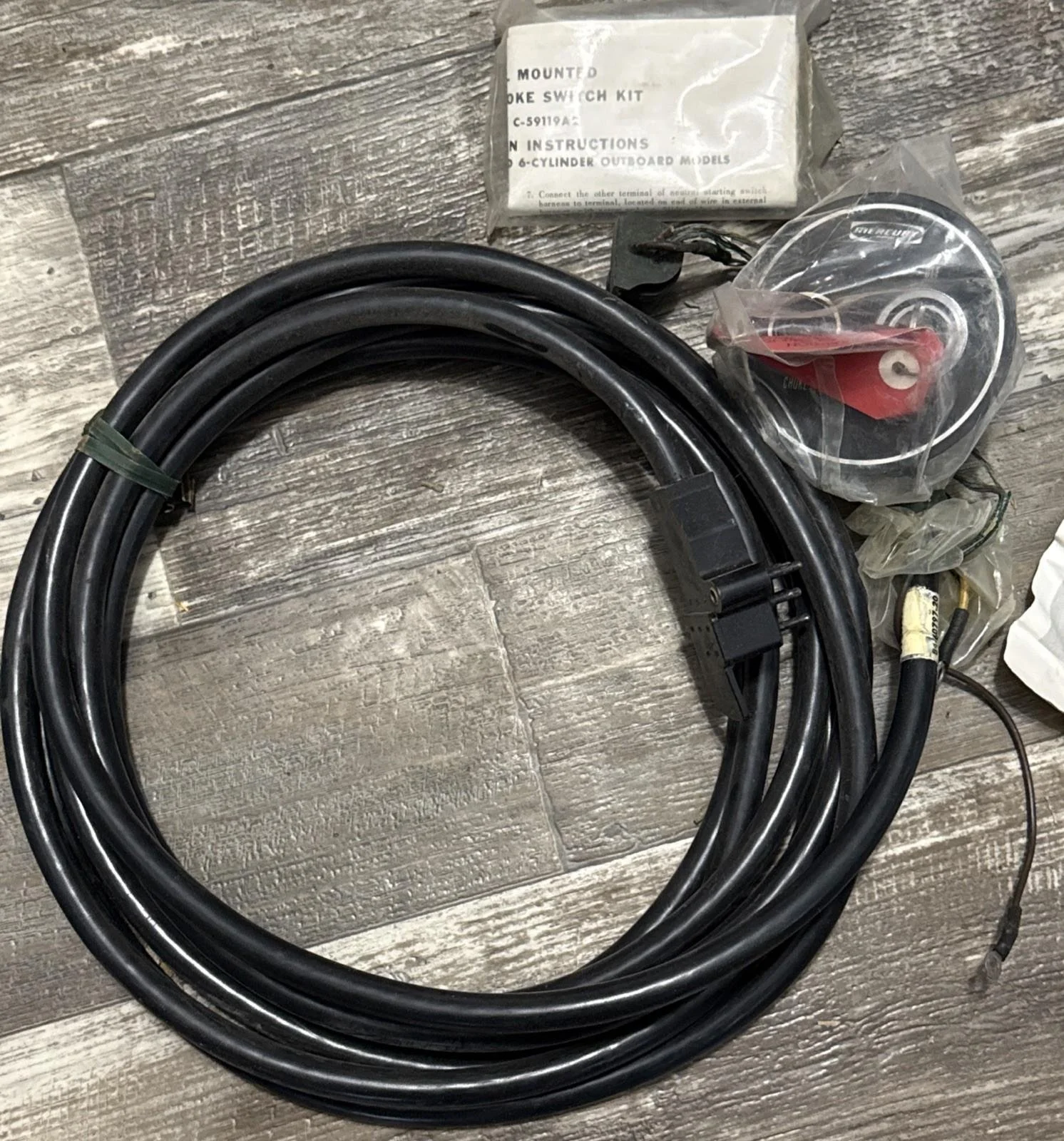 The product is a set of rigging components designed specifically for Mercury outboard engines. It includes parts such as the manufacturer part numbers 59119A3, 59119A2, and 84-60797-20. The set also comes with a California Prop 65 Warning due to its potential for environmental harm if not handled or installed properly. This product seems to cater to boat owners looking to maintain or repair their Mercury outboard engines with genuine parts from the manufacturer.