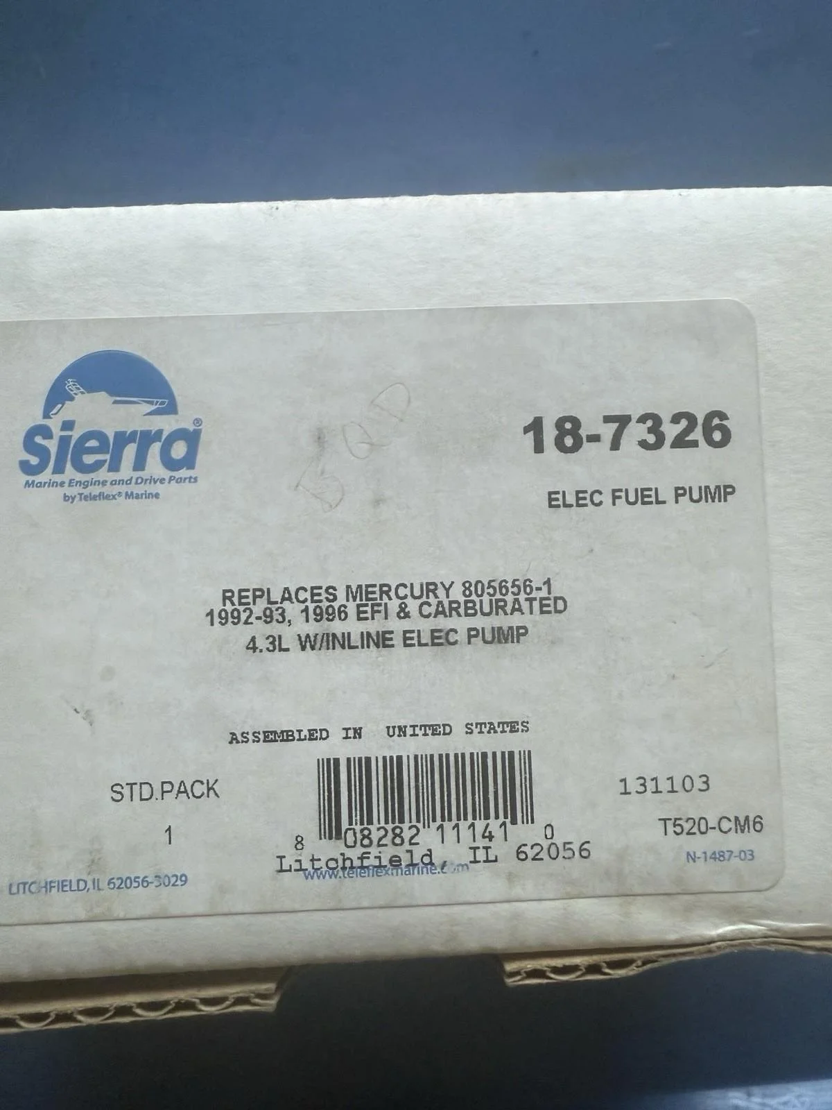 Sierra 18-7326 Electric Fuel Pump MerCrusier OMC Volvo Marine V6 V8 805656A2