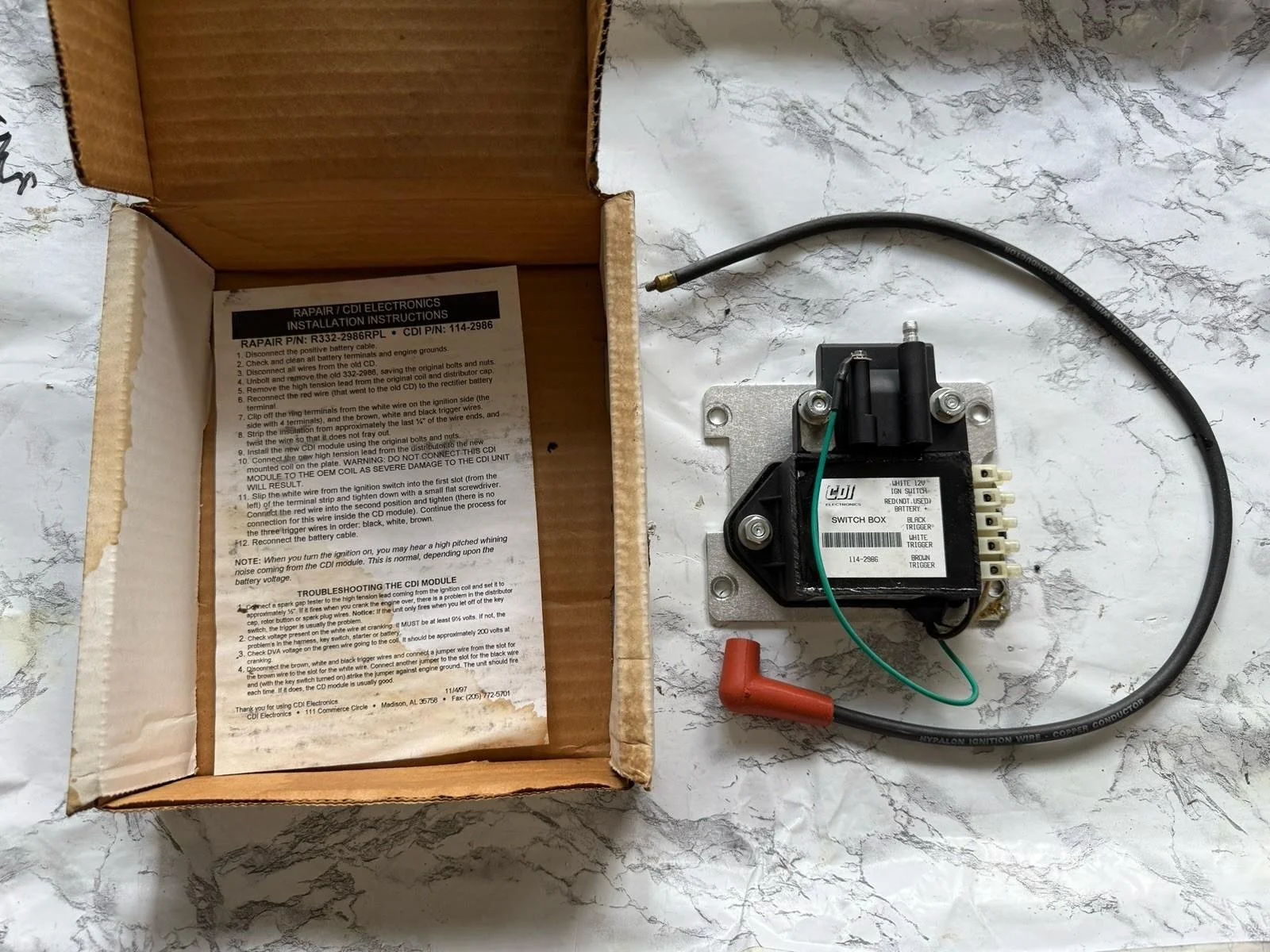 switch box and ignition coil are attached to a mounting plate for easy installation. This unit is a replacement to the original case. It does not contain a rev limiter or tach circuit.